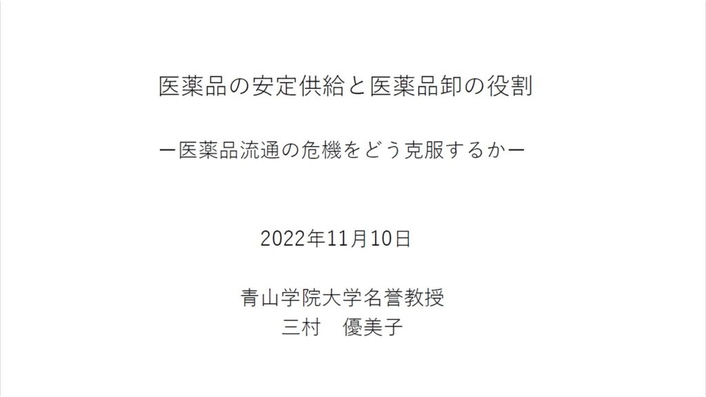 講演「医薬品の安定供給と医薬品卸の役割 ー医薬品流通の危機をどう克服するかー」